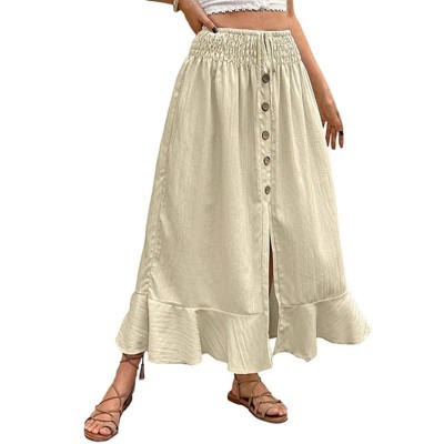 Coolmee Women's Summer Boho Long Skirts A-Line Flowy Ruffle Tiered Split Elastic High Waist Beach