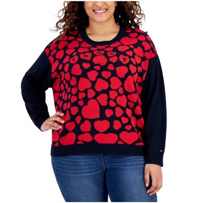 Tommy Hilfiger Womens Heart Logo Knit Pullover Sweater