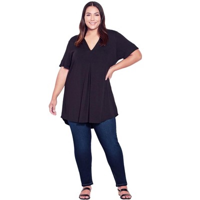 Roaman's Notch-Neck Flutter-Sleeve Blouse
