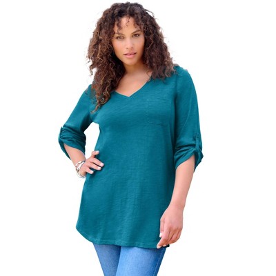 Roaman's Plus Size Three-Quarter Sleeve Notch Neck Soft Knit Tunic