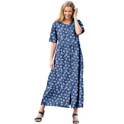 Jessica London Stretch Knit Three-Quarter Sleeve T-Shirt Dress