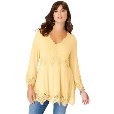 Woman Within Lace-Trim V-Neck Tank