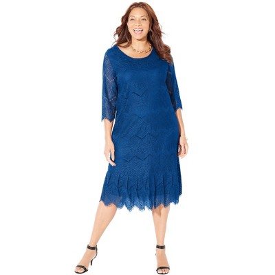 Catherines Shirred Lace Flounce Dress