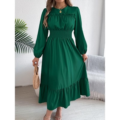 BLUEMING Women's Long Sleeve Maxi Dress with Ruffle Trim & Waist Tie