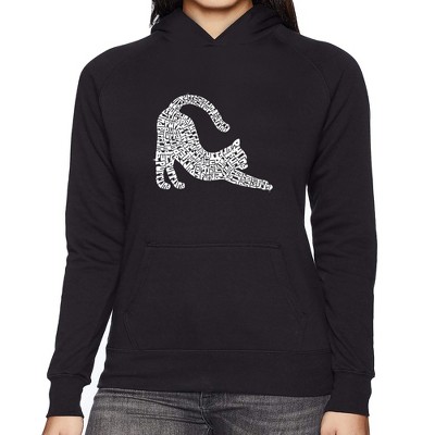 LA Pop Art Stretching Cat - Women's Word Art Hooded Sweatshirt
