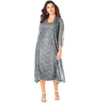 Roaman's Plus-Size 2 Piece S/S Sequin Top And Pant Set