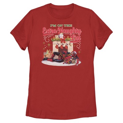 Womens Marvel: Deadpool I'm On the Extra Naughty List T Shirt