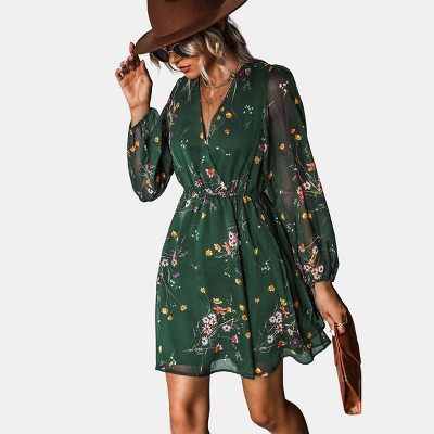 Women's Floral Long Peasant Sleeve Chiffon A-Line Mini Dress - Cupshe