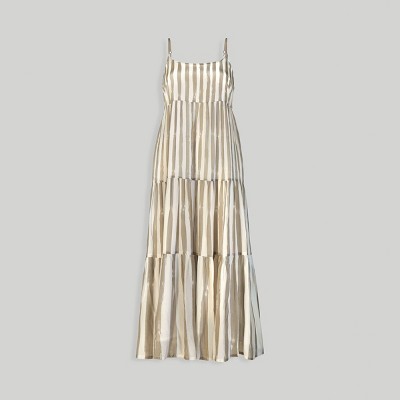 Reistor Women's Striped Down Strappy Tiered Maxi Dress Black Stripes