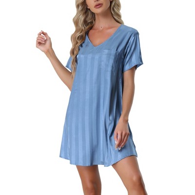 cheibear Women's Short Sleeve Mini length Striped Pajama Dress