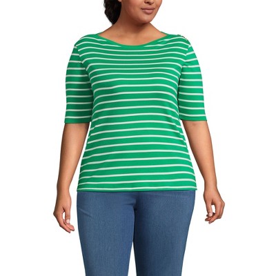 Lands' End Women's Supima Cotton Elbow Sleeve Boatneck Button Shoulder Tee