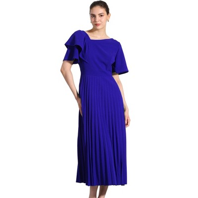 Allegra K Women's Loose Flowy Cloak Sleeve Cape Pleated Chiffon Dress