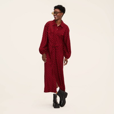 Women's Buffalo Check Long Sleeve Utility Midi Shirt Dress - Woolrich x Target Red/Black