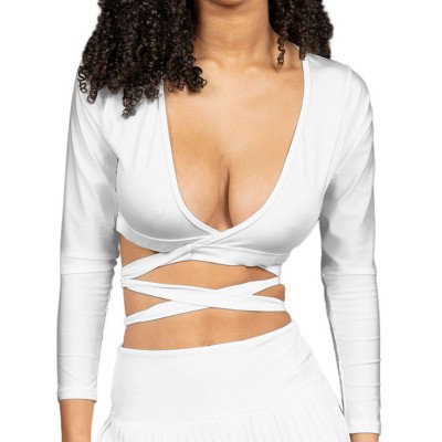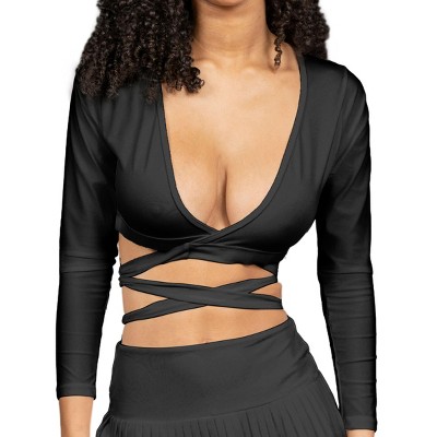 LECHERY Women's Lustrous Silky Shiny Long Sleeve Wrap Top