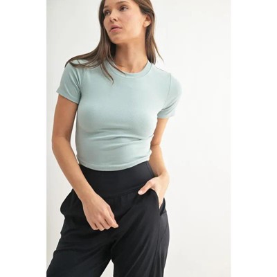 Mono B Essential Micro Ribbed Cropped Athleisure Tee