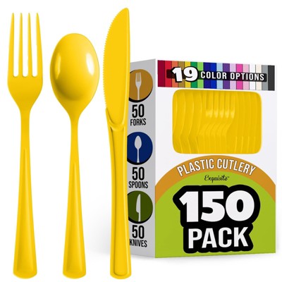 Exquisite Solid Color Plastic Utensil Cutlery Set Forks Spoons Knives- 150 Pack