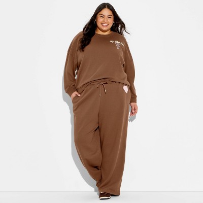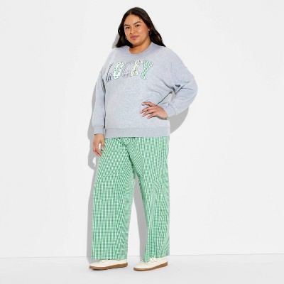 Women's Olive Fleece Graphic Pullover Sweatshirt - Cream