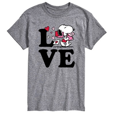 Peanuts - Love Snoopy - Men's Short Sleeve Graphic T-Shirt - From the best-loved comic strip in history comes officially licensed PEANUTS apparel for fans everywhere. Show your love for Charlie Brown, Snoopy, Woodstock, Lucy, Linus, Pigpen and the whole gang. Copyright Peanuts.