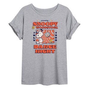 Women's - Peanuts - Snoopy And Woodstock Dance Night Oversized Graphic T-Shirt - 1 of 4