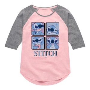 Disney - Lilo & Stitch - All The Expressions of Stitch - Toddler & Youth Girls Raglan Graphic T-Shirt - Add a touch of magic to your wardrobe with this graphic apparel featuring iconic Disney designs. Showcasing beloved characters and classic imagery, each piece combines nostalgic charm with modern style—perfect for Disney fans of all ages. Whether you're headed to the parks or just adding whimsy to your everyday look, these graphics bring the magic to life.