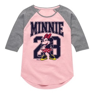Disney - Minnie Mouse - Athletic Teammate 28 - Toddler & Youth Girls Raglan Graphic T-Shirt - Add a touch of magic to your wardrobe with this graphic apparel featuring iconic Disney designs. Showcasing beloved characters and classic imagery, each piece combines nostalgic charm with modern style—perfect for Disney fans of all ages. Whether you're headed to the parks or just adding whimsy to your everyday look, these graphics bring the magic to life.