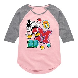 Disney - Mickey Mouse - Stitched Patches - Toddler & Youth Girls Raglan Graphic T-Shirt - Add a touch of magic to your wardrobe with this graphic apparel featuring iconic Disney designs. Showcasing beloved characters and classic imagery, each piece combines nostalgic charm with modern style—perfect for Disney fans of all ages. Whether you're headed to the parks or just adding whimsy to your everyday look, these graphics bring the magic to life.