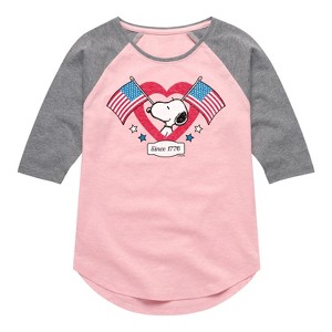 Girls' Peanuts Snoopy Since 1776 Flag Heart Shirt Tail Raglan Graphic T-shirt - Light Pink/Ath Hea - 5T