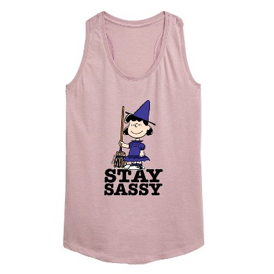 Peanuts - Lucy Stay Sassy - Men's Short Sleeve Graphic T-Shirt - From the best-loved comic strip in history comes officially licensed PEANUTS apparel for fans everywhere. Show your love for Charlie Brown, Snoopy, Woodstock, Lucy, Linus, Pigpen and the whole gang. Copyright Peanuts.