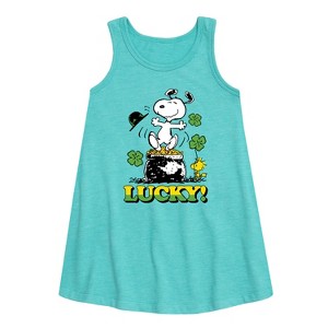 Girls' - Peanuts - Lucky Snoopy Graphic Sleeveless Aline Dress - 1 of 4
