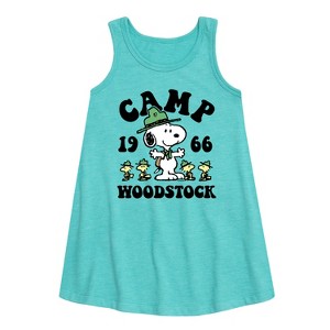 Peanuts - Camp Woodstock - Toddler and Youth Girls A-line Dress - From the best-loved comic strip in history comes officially licensed PEANUTS apparel for fans everywhere. Show your love for Charlie Brown, Snoopy, Woodstock, Lucy, Linus, Pigpen and the whole gang. Copyright Peanuts.