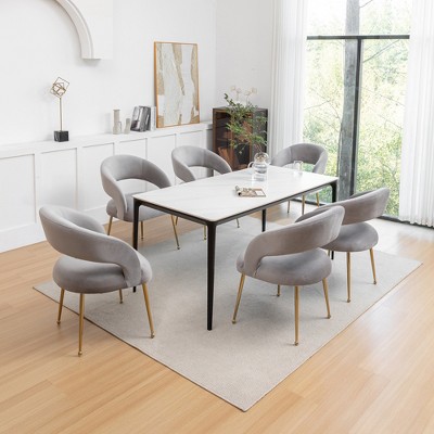 Product Name: Modern GREY Boucle Upholstered Dining Chair Metal Frame Armless chair for Kitchen, Living Room (Set of 6)