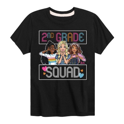 Barbie - Back To School - Preschool Squad - Toddler And Youth Short Sleeve Graphic T-Shirt - Step into the glamorous pink world of Barbie with our officially licensed graphic garments for the fashion-forward! Whether you dream of being a fashion designer, a mermaid princess, or a world-traveling explorer, our garments bring Barbie's world to life with vibrant colors and playful prints. Crafted with quality materials and attention to detail, each piece ensures comfort and durability for all-day play. Express your unique sense of style and imagination with our exclusive Barbie graphic apparel!