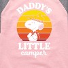 Peanuts - Daddy's Little Camper - Toddler And Youth Girls Raglan Graphic T-Shirt - From the best-loved comic strip in history comes officially licensed PEANUTS apparel for fans everywhere. Show your love for Charlie Brown, Snoopy, Woodstock, Lucy, Linus, Pigpen and the whole gang. Copyright Peanuts.