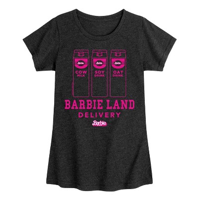 Girls' Barbie Barbie Land Palm Trees Fitted Short Sleeve Graphic T-Shirt - Heather Black - Small