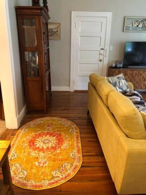 Chose this beautiful area rug for several reasons. My home is mid century modern in style so much of my decor is accented in colors indicative of that era. This rug matches my furniture, hard wood floors and adds a bohemian flare to the existing look. Been using social media to document my design and this rug is a hit with those following along. The quality is superior and material easy to clean. Would buy again tomorrow!