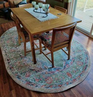 My dealings Rugs.com have been amazing. First all the colors in this new rug tie in beautifully with my decorating. The oval shape really softens all the hard edges in my dining room. I has been a true pleasure dealing with Rugs.com. Thank you.