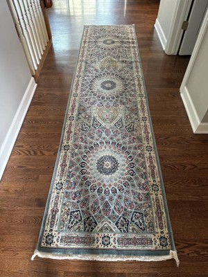 Great runner! Beautiful bold colors and design! The only thing is on one end of the rug the fringe runs wider than the rug so doesn’t lay flat.