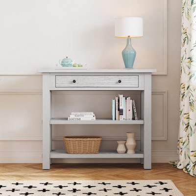 - Exquisite Design: The drawer on this console Table for entryway features durable handles that enhance its functionality while adding a touch of retro refinement. The spacious drawer provides storage for keys, letters, and remote controls, keeping your Tabletop tidy. Two open shelves offer ample space for books, decorative items, and daily essentials.