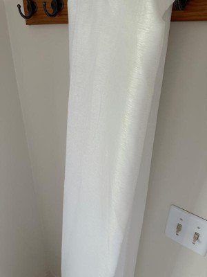 Lucento 2 Panel Victoria Sheer Window Curtain in White is 54” wide by 84” length. The fabric is a durable sheer mesh that lets in light but at the same time protects your privacy. They have a grommet top header which is not my favorite style because it looks more like a shower curtain. They are machine washable for easy cleaning. They are easy to install although you have to purchase the hardware separately.