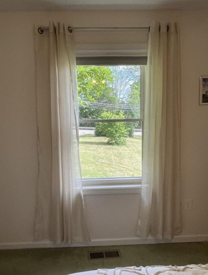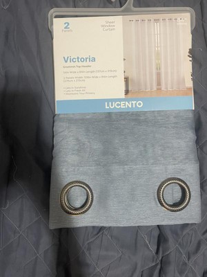 - Beautiful Sheer Curtain Grommet Panels will liven up your indoor or outdoor spaces with a sense of airiness and beauty. Made from solid color polyester voile. Bring elegance and class to any room with this light filtering sheer curtains. Our luxurious sheer panels give your home a new & elegant look. Allows natural light to flow through the room. For a full look use two (2) panels to cover a standard window. This picture shows two (2) sheer panels and this package contains two (2) Panels.