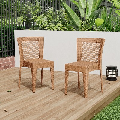 Sapphtopaz Patio Dining Chairs Wicker Outdoor Chair with Thick Cushion, Wicker Back for Garden, Patio, Lawn, Backyard, Brown