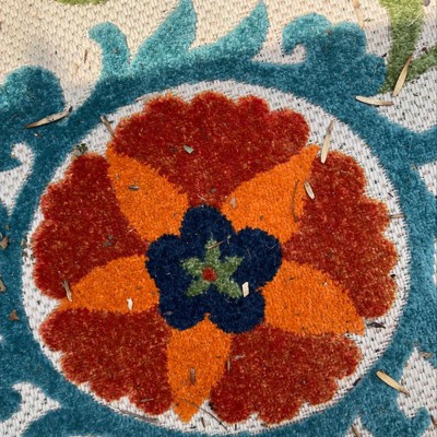 I have had this rug for a year and I absolutely loved it for the first few months. The colors were vibrant. Then it started to fade. The red color is now brown and all the other color are dull and faded. I only get morning sun in the area where it is, not the strong afternoon sun. I am so dissappointed. If the area you plan to put it in is always in shade, I highly recommend this rug. If area gets sun plan to only have it for a year.