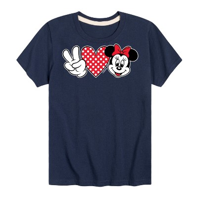 Mickey & Friends - Peace Love Minnie - Toddler And Youth Short Sleeve Graphic T-Shirt - Add a touch of magic to your wardrobe with this graphic apparel featuring iconic Disney designs. Showcasing beloved characters and classic imagery, each piece combines nostalgic charm with modern style—perfect for Disney fans of all ages. Whether you're headed to the parks or just adding whimsy to your everyday look, these graphics bring the magic to life.