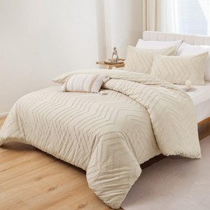 The neutral bedding set features a tufted design that adds a touch of elegance and sophistication to any bedroom. The textured look and neutral color palette make it versatile enough to complement any decor style, whether it's boho chic or farmhouse. The tufted comforter is perfect for those who want to add a little bit of extra detail to their bedding.