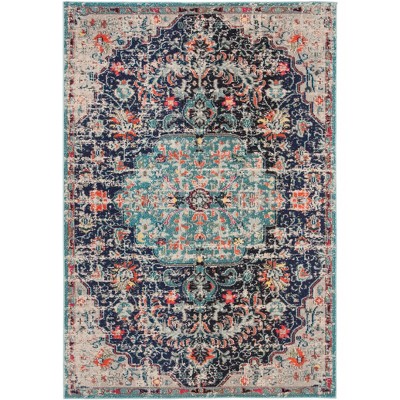 Acekool Modern Geometric Area Rug, Large Blue Patchwork Throw Carpet, Low Pile Non-Slip Indoor Rug for Living Room, Bedroom, Dining Room, Office