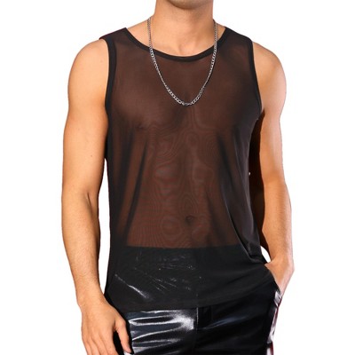 INSPIRE CHIC Men's Sleeveless Round Neck Party Mesh Sheer Crop Tank Top