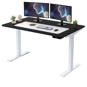 - A beautiful, durable, dual-motor electric adjustable height standing desk with a 60x30” black desktop