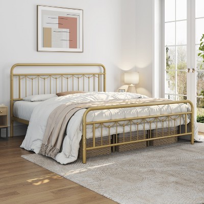 Sapphtopaz Twin Bed Frame Metal Platform Bed with Victorian Style Headboard, Metal Slats Bedroom Furniture, No Box Spring Needed, Black