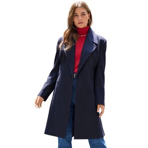 Roaman's Plus Size A-Line Belted Wool Blend Coat - 1 of 3