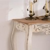 Elegant Design This exquisite vintage console table, boasting an adorned with a scalloped edge, curved legs, and floral carvings, is the ideal addition to any indoor space. It not only enhances the furnishing but also complements both classic and modern settings.